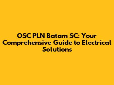 OSC PLN Batam SC: Your Guide To Electrical Solutions