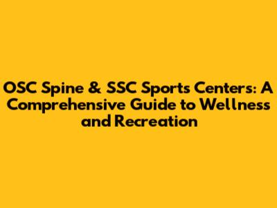 OSC Spine & SSC Sports Centers: Your Ultimate Guide
