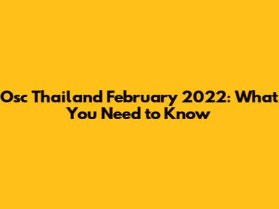 Osc Thailand February 2022: What You Need To Know