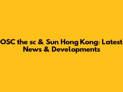 OSC The Sc & Sun Hong Kong: Breaking News & Updates