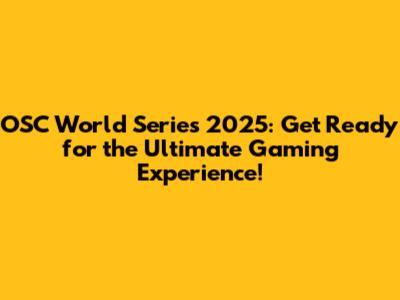 Unveiling the OSC World Series 2025 Dates and Locations