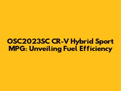 OSC2023SC CR-V Hybrid Sport MPG: What You Need To Know