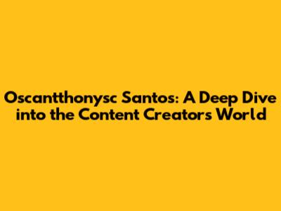 Oscantthonysc Santos: A Deep Dive Into The Content Creator's World
