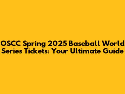 Why You Should Grab Your OSCC Spring 2025 Baseball World Series Tickets Now!