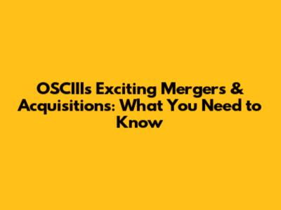 OSCIII's Exciting Mergers & Acquisitions: What You Need To Know