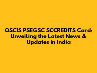 OSCIS PSEGSC SCCREDITS Card: Latest News & Updates In India