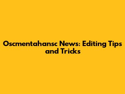 Oscmentahansc News: Editing Tips And Tricks