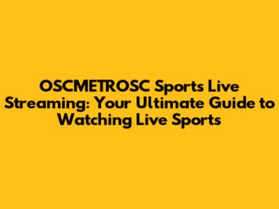 OSCMETROSC Sports Live Streaming: Your Ultimate Guide