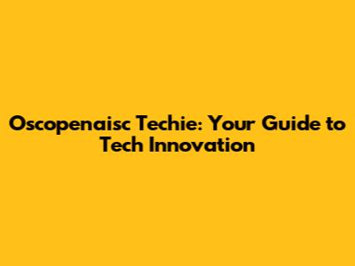 Oscopenaisc Techie: Your Guide To Tech Innovation