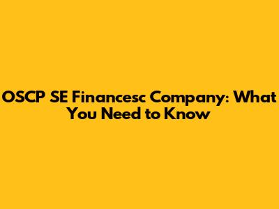 OSCP SE Financesc Company: What You Need To Know