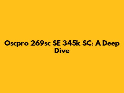 Oscpro 269sc SE 345k SC: A Deep Dive