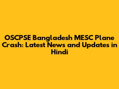 OSCPSE Bangladesh MESC Plane Crash: Latest News and Updates in Hindi