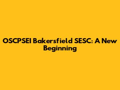 OSCPSEI Bakersfield SESC: Your Guide To A Fresh Start