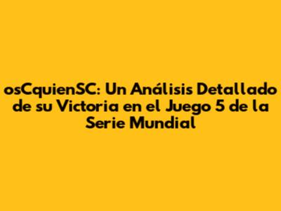 La victoria de osCquienSC en el Juego 5 de la Serie Mundial tuvo un impacto significativo en la serie y en el equipo mismo. Esta victoria no solo les dio una ventaja crucial en la serie, sino que tambi茅n elev贸 la moral del equipo y fortaleci贸 su confianza. El impacto de ganar el Juego 5 es enorme. La victoria les dio a osCquienSC la oportunidad de asegurar el campeonato en el pr贸ximo juego. La presi贸n se traslad贸 al equipo contrario, que ahora se enfrenta a la posibilidad de la eliminaci贸n. La moral del equipo se dispar贸, y la confianza en sus habilidades se fortaleci贸. Los jugadores se sintieron motivados y decididos a continuar luchando por el campeonato. Los fan谩ticos tambi茅n celebraron la victoria con entusiasmo. El apoyo incondicional de los fan谩ticos impuls贸 al equipo a dar lo mejor de s铆. La victoria en el Juego 5 no solo es un paso importante hacia el campeonato, sino que tambi茅n es un testimonio del arduo trabajo, la dedicaci贸n y la determinaci贸n del equipo.