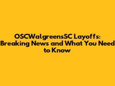 OSCWalgreensSC Layoffs: Latest News And Updates