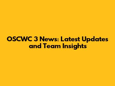 OSCWC 3 News: Latest Updates And Team Insights