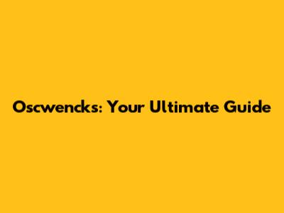 Oscwencks: Everything You Need To Know