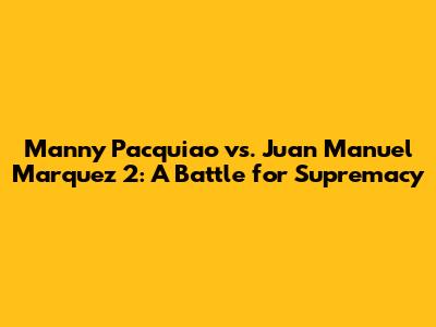 Pacquiao Vs Marquez 2: Epic Boxing Rivalry