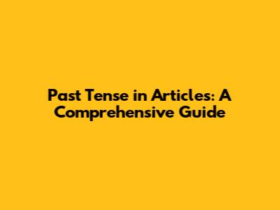 Past Tense In Articles: A Comprehensive Guide