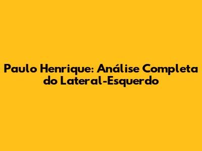 Paulo Henrique: Análise Completa Do Lateral-Esquerdo