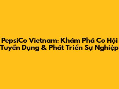 PepsiCo Vietnam: Cơ Hội Việc Làm & Tuyển Dụng Mới Nhất