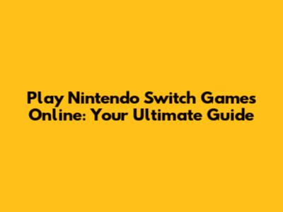 Play Nintendo Switch Games Online: A Complete Guide