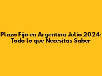 Plazo Fijo Argentina Julio 2024: Guía Completa Y Actualizada