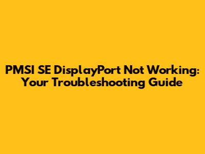 PMSI SE DisplayPort Not Working: Troubleshooting Guide