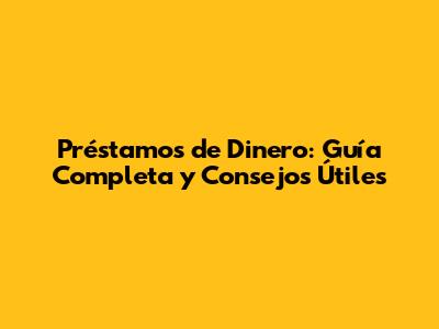 Préstamos De Dinero: Guía Completa Y Consejos Útiles