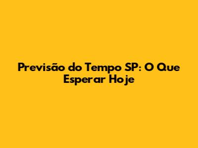Previsão Do Tempo SP: O Que Esperar Hoje