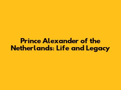 Prince Alexander Of The Netherlands: Life And Legacy
