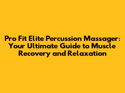 Pro Fit Elite Percussion Massager: Your Ultimate Guide