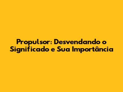 Propulsor: Desvendando O Significado E Sua Importância