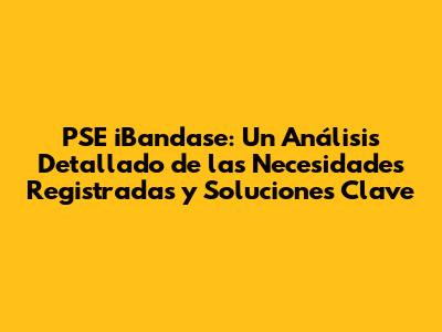 PSE IBandase: Necesidades Registradas Y Soluciones Clave