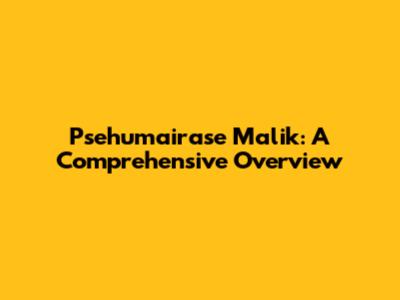 Psehumairase Malik: Biography, Career & More