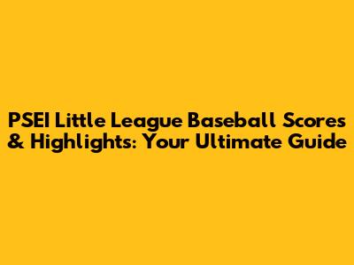 PSEI Little League Baseball Scores & Highlights