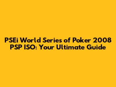 PSEi World Series Of Poker 2008 PSP ISO: Your Ultimate Guide