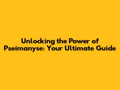 Unlocking the Power of Pseimanyse: Your Ultimate Guide