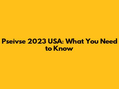 Pseivse 2023 USA: What You Need To Know