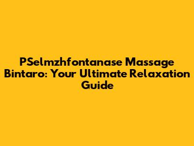 PSelmzhfontanase Massage Bintaro: Your Guide To Relaxation
