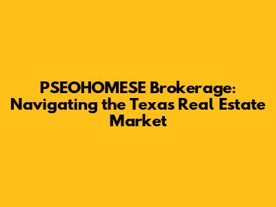 PSEOHOMESE Brokerage: Navigating The Texas Real Estate Market