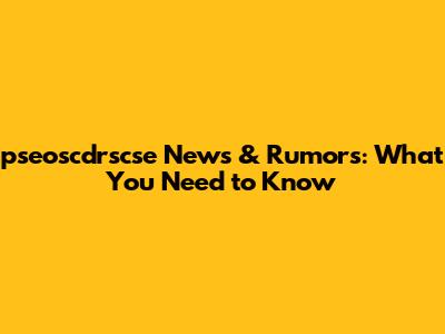 Pseoscdrscse News & Rumors: What You Need To Know