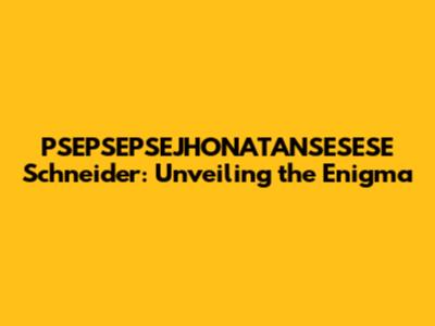 PSEPSEPSEJHONATANSESESE Schneider: All You Need To Know