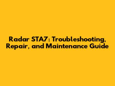 Radar STA7: Troubleshooting, Repair, And Maintenance Guide