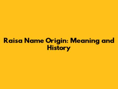 Raisa Name Origin: Meaning And History