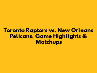 Raptors Vs. Pelicans: Game Highlights & Matchups