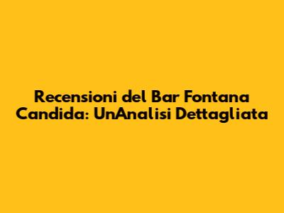 Recensioni Del Bar Fontana Candida: Un'Analisi Dettagliata