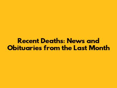 Recent Deaths: News And Obituaries From The Last Month