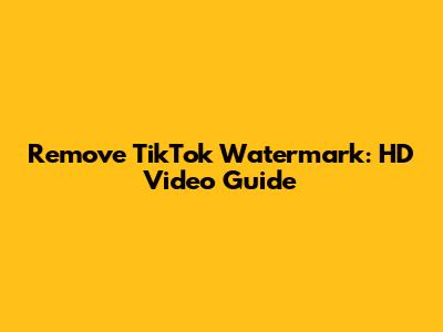 Remove TikTok Watermark: HD Video Guide