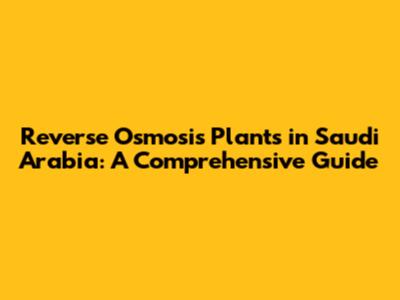 Reverse Osmosis Plants In Saudi Arabia: A Comprehensive Guide